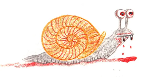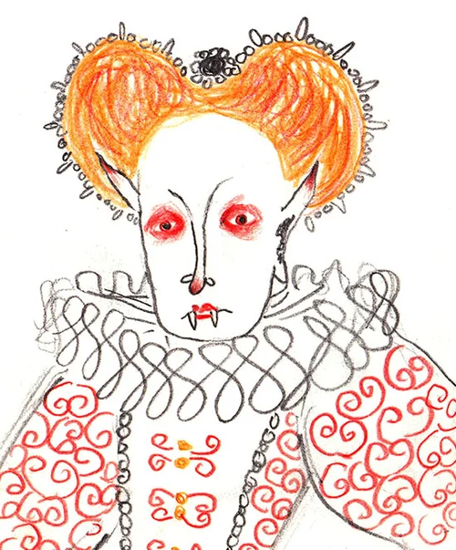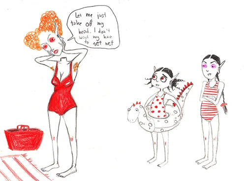 Vampire sketches: there’s Mary who is quite bloody and keeps on loosing her head and the vampire sisters who are up to no good. Blood snails are a permanent feature too. And when vampires go to the beach they moonbathe of course.